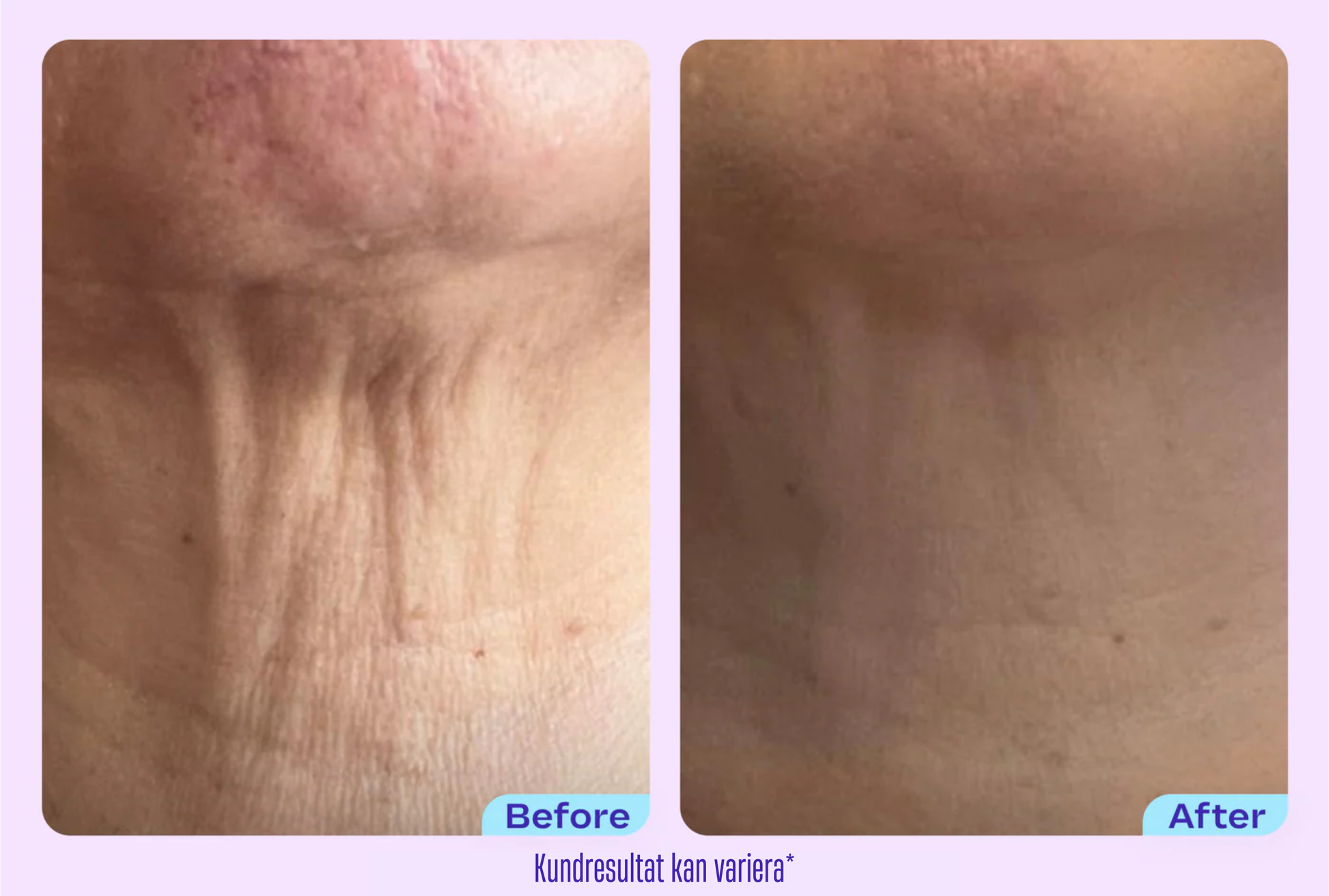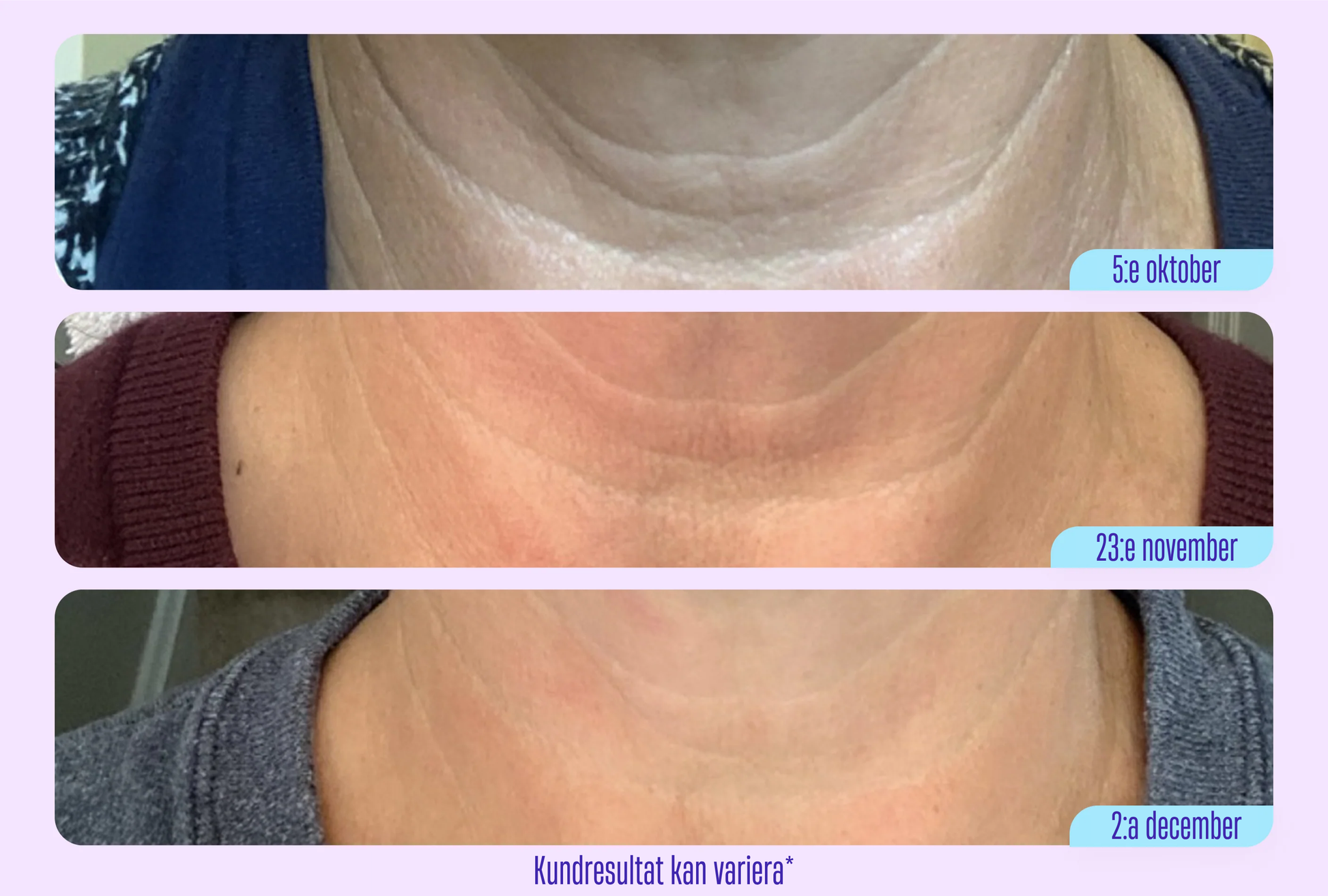 Efter 8 veckor ser huden synbart mer lyft ut, fastare och stramare.